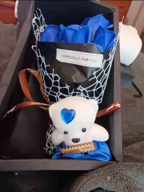 1Pc Handmade 7 Rose Soap Bouquet Little Bear Gift Box Creative Valentine's Day Mother's Day Birthday Party Rose Flower Gifts