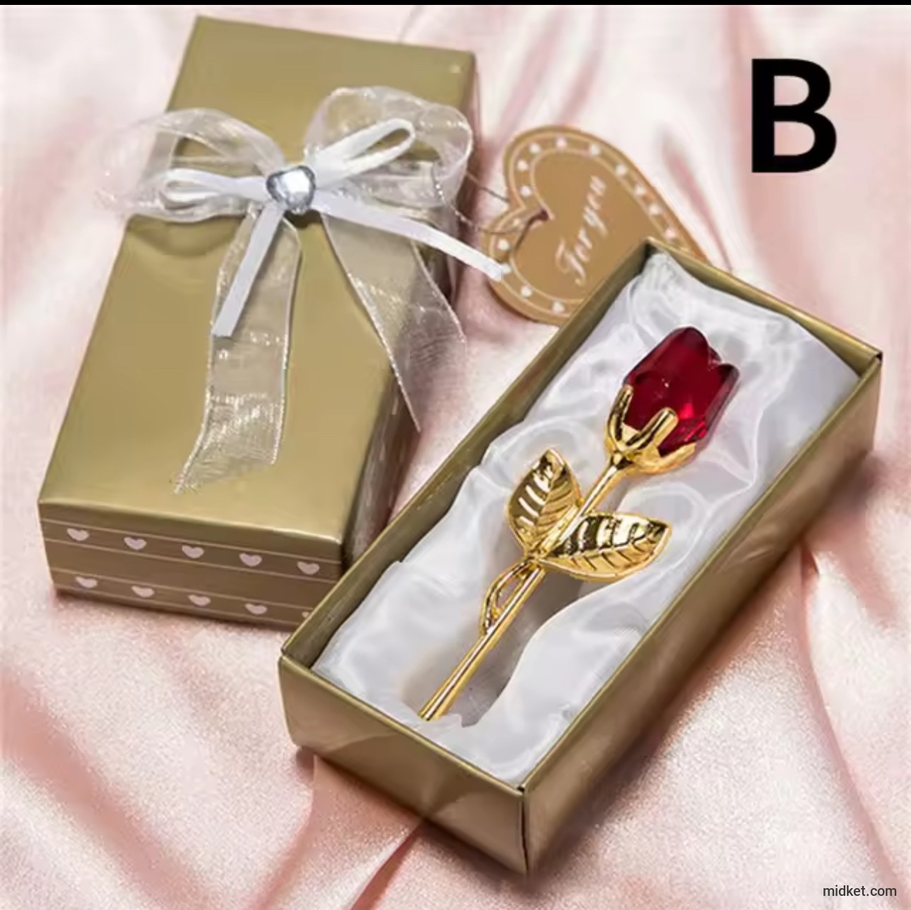 6 Colors Crystal Glass Rose Flower Figurines Craft Valentine's Day Favors X'mas Lovers' Gift Souvenir Home Wedding Decoration