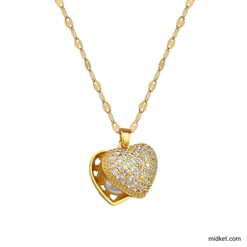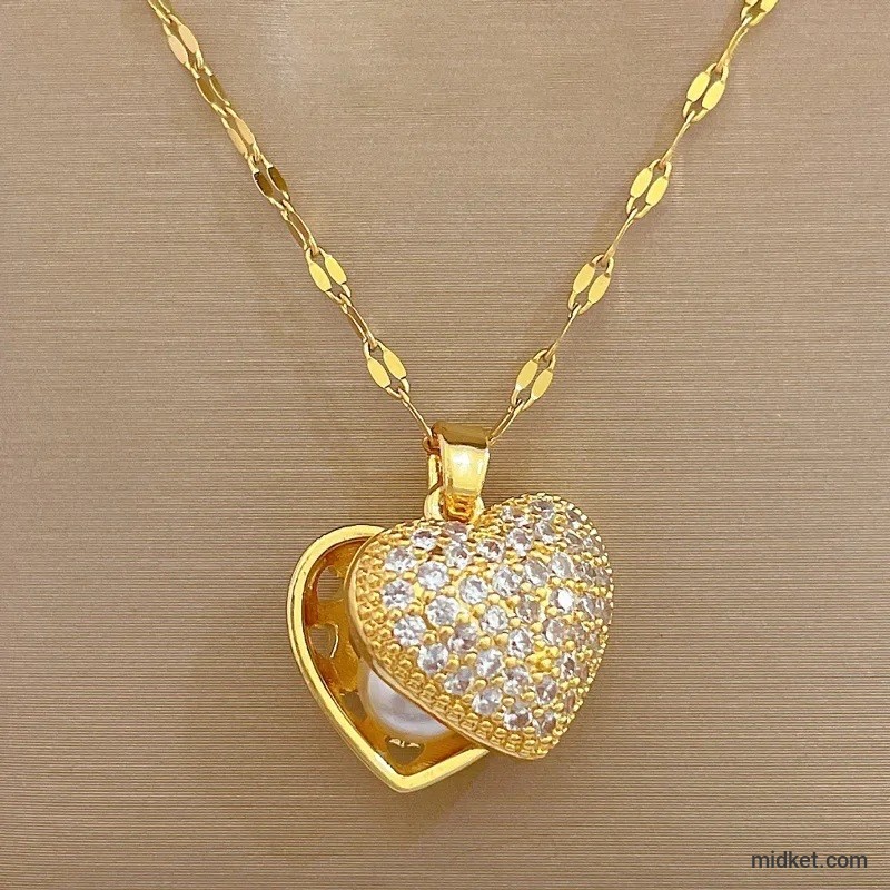 Fashionable and Luxurious Peach Heart Pearl Oyster Necklace, Personalized and Versatile Stainless Steel Clavicle Chain