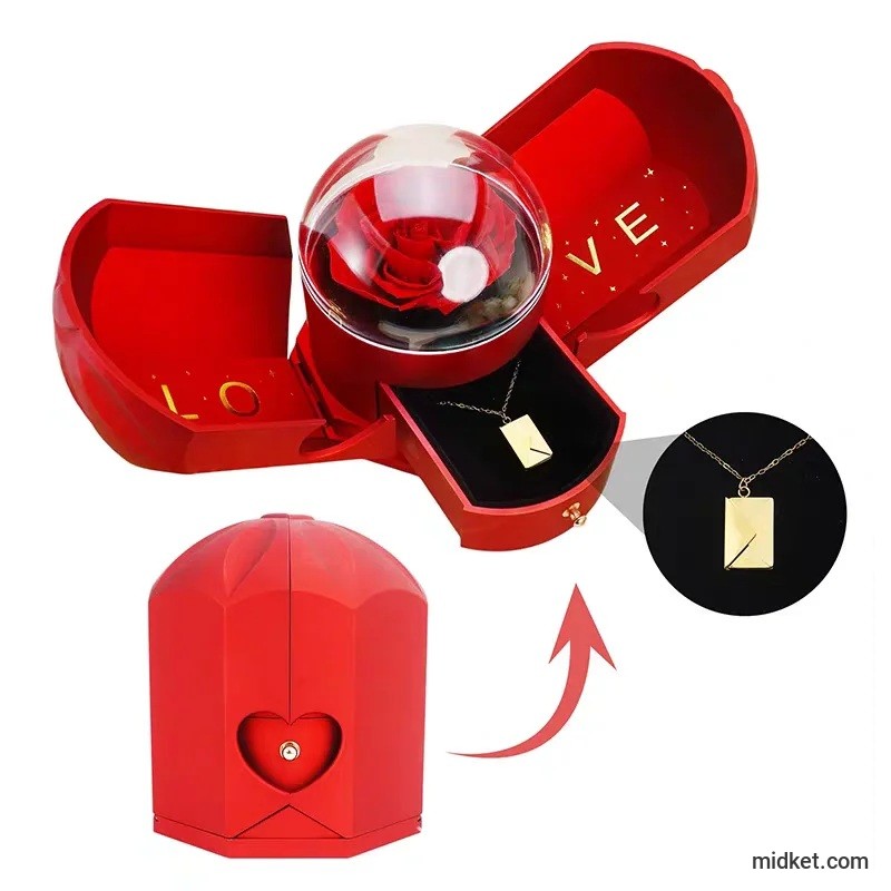 Surprise Flower Jewelry Box - Mysterious Unboxing with Rose Gold Dried Flowers & Hidden Love Drawer - Luxury Birthday Gift for H